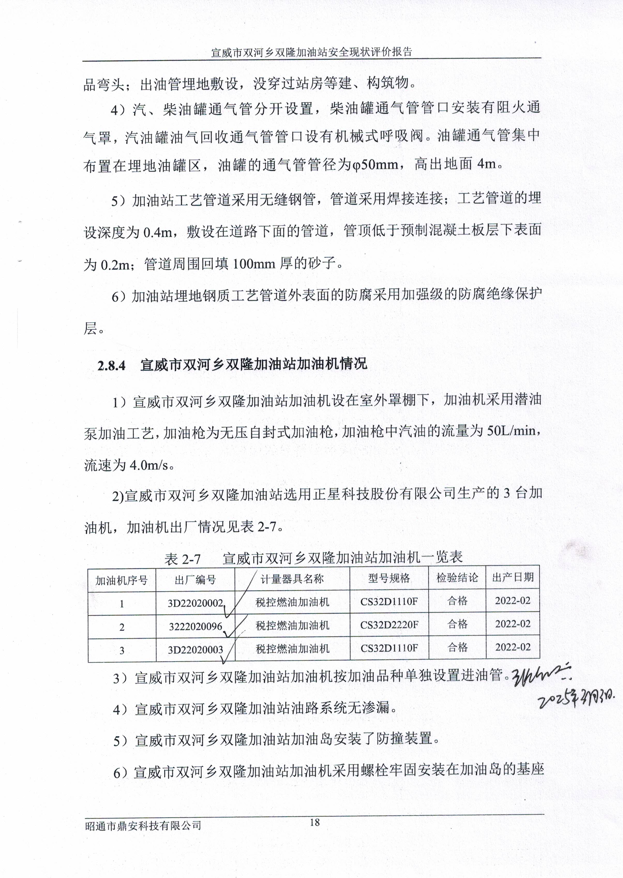 宣威市雙河鄉雙隆加油站安全現狀評價報告