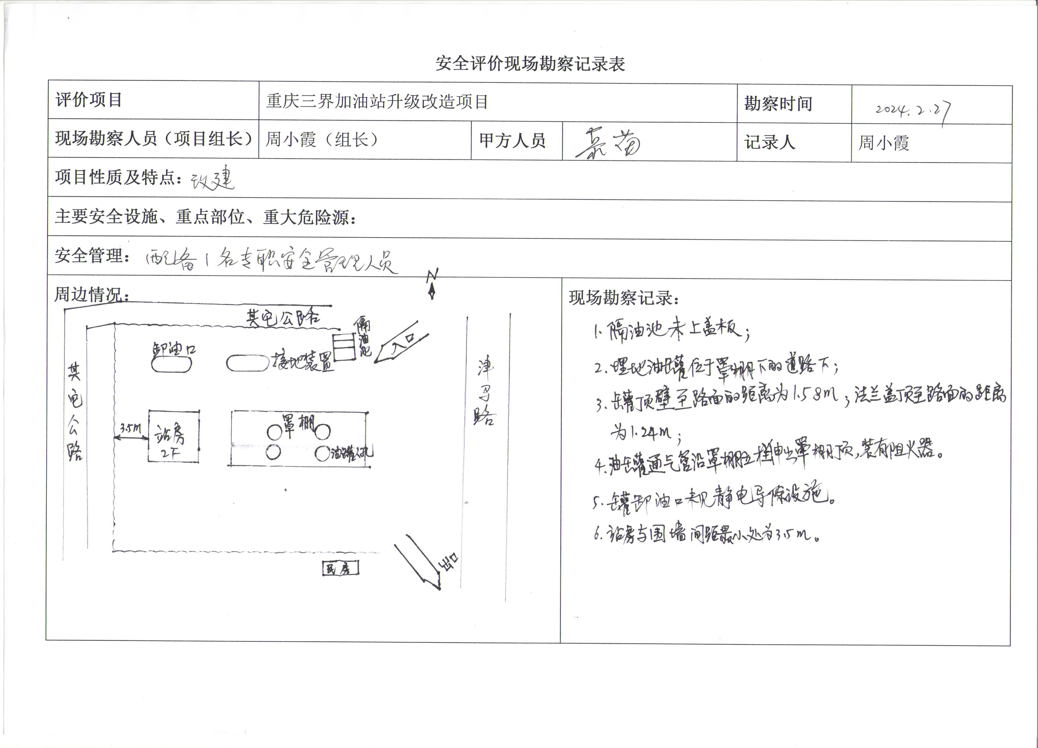 重慶三界加油站有限公司重慶三界加油站升級改造安全驗收評價