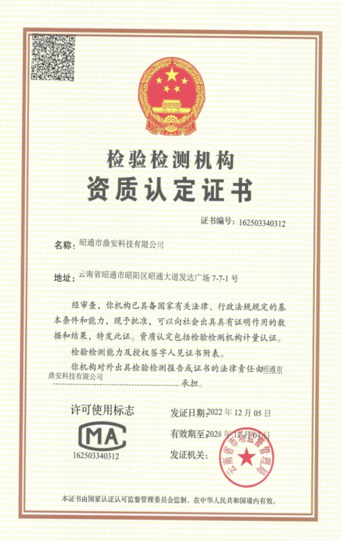 檢驗(yàn)檢測(cè)機(jī)構(gòu)資質(zhì)認(rèn)定證書