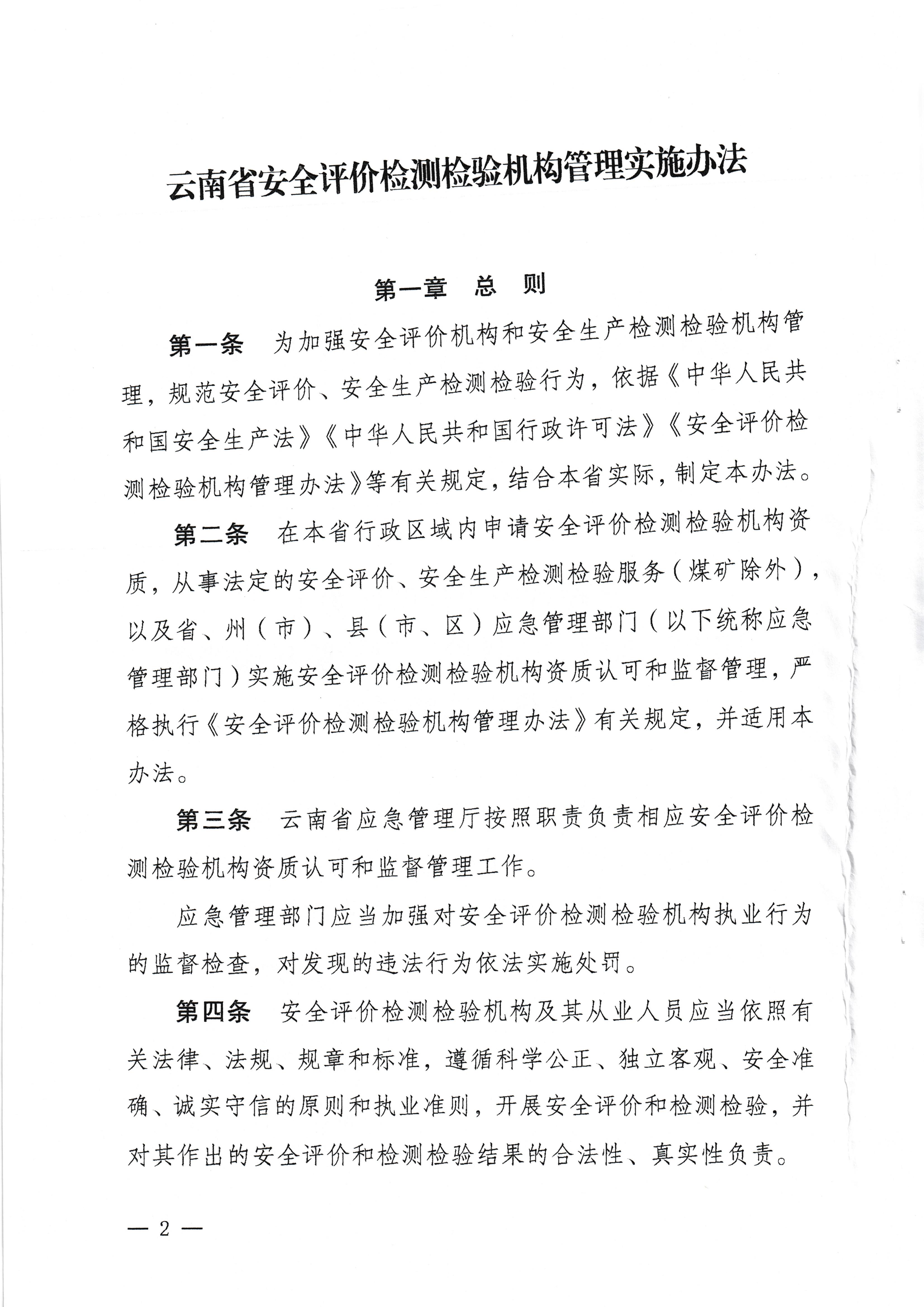 云南省應急管理廳關于印發云南省安全評價檢測檢驗機構管理實施辦法的通知